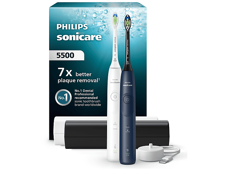 Zestaw szczoteczek sonicznych PHILIPS SONICARE Sonicare 5500 HX7119/01 Biały, Niebiesko-czarny