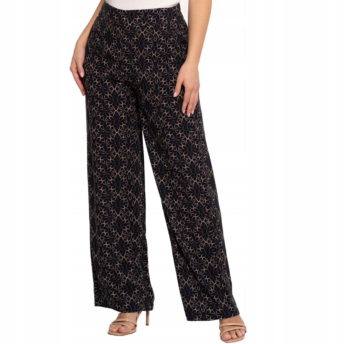 Spodnie Damskie Szerokie Proste Nogawki Obłędny Wzór Zwiewne 3XL MORAJ