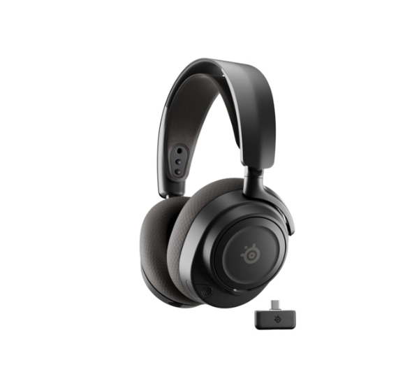 Bluetooth:tak;Czas pracy do:54 h;Dla gracza (gamingowe):tak;Długość przewodu:0 m;Dynamika (SPL):0 dB;Dźwięk przestrzenny:tak;Energia nominalna:3,23 Wh;Gwarancja:24 miesiące;Impedancja:0 Ω;Zgodność z aplikacją:SteelSeries Arctis Companion;Kompatybilność aplikacji:Android od wersji 8.0, iOS od wersji 15.5;Interoperacyjność 3 - tekst 1:https://play.google.com/store/apps/details?id=com.steelseries.arctiscompanion&hl=en;Interoperacyjność 4 - tekst 2:https://apps.apple.com/us/app/steelseries-arctis-companion/id6502297763;Interoperacyjność 8 - obowiązkowe:Produkt może wymagać aktualizacji;Kolor:czarny;Kolor:czarny;Konstrukcja:zamknięte;Liczba możliwych cykli ładowania:0;Masa baterii:0 g;Minimalna wydajność po 500 cyklach:0;Model (wariantowanie):Arctis Nova 7 Gen 2 ;Możliwość demontażu i wymiany:serwis;Możliwość powtórnego ładowania:tak;Możliwość recyklingu:tak;Możliwość wymiany przez użytkownika:nie;Możliwy do użycia środek gaśniczy:0;Napięcie nominalne:3,8 V;Numer identyfikacyjny modelu:653033PN3;Odbiór zużytego sprzętu:Oferujemy nieodpłatny odbiór zużytych baterii przenośnych oraz baterii LMT, Sprawdź więcej informacji o odbiorze zużytych baterii;Odłączany kabel:tak;Odłączany mikrofon:nie;Pasmo przenoszenia:20 Hz - 20 kHz;Platforma:PC/laptop, PlayStation 5, PlayStation 4, Nintendo Switch, tablet/smartfon;Podświetlenie:tak;Pojemność nominalna:850 mAh;Połączenie:radiowe 2,4 GHz / Bluetooth;Radiowe 2,4 GHz:tak;Redukcja szumów mikrofonu:tak;Redukcja szumów mikrofonu:tak;Regulacja głośności:tak;Rodzaj słuchawek:bezprzewodowe - Bluetooth, 2,4 GHz;Seria:SteelSeries Arctis Nova 7;Skład chemiczny:litowo-jonowa;Substancje niebezpieczne inne niż rtęć, kadm lub ołów:0;Średnica membrany:0 mm;Trwałość baterii:0;Typ baterii:Li-ion;Typ podłączenia:bezprzewodowe;Typ podłączenia relacje:radiowe 2,4 GHz / Bluetooth;Typ słuchawek:nauszne;Wariant:Arctis Nova 7 Gen 2 Black;Wyposażenie:adapter USB-A, adapter USB-C, instrukcja obsługi, przewód audio, przewód USB-C;Zasięg:10 m;Zawartość krytycznych surowców:0;Zawartość materiałów z recyklingu:0;Złącze:USB-C...